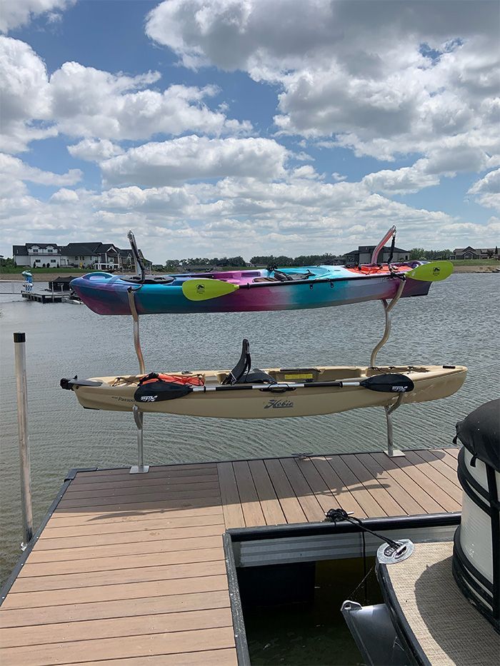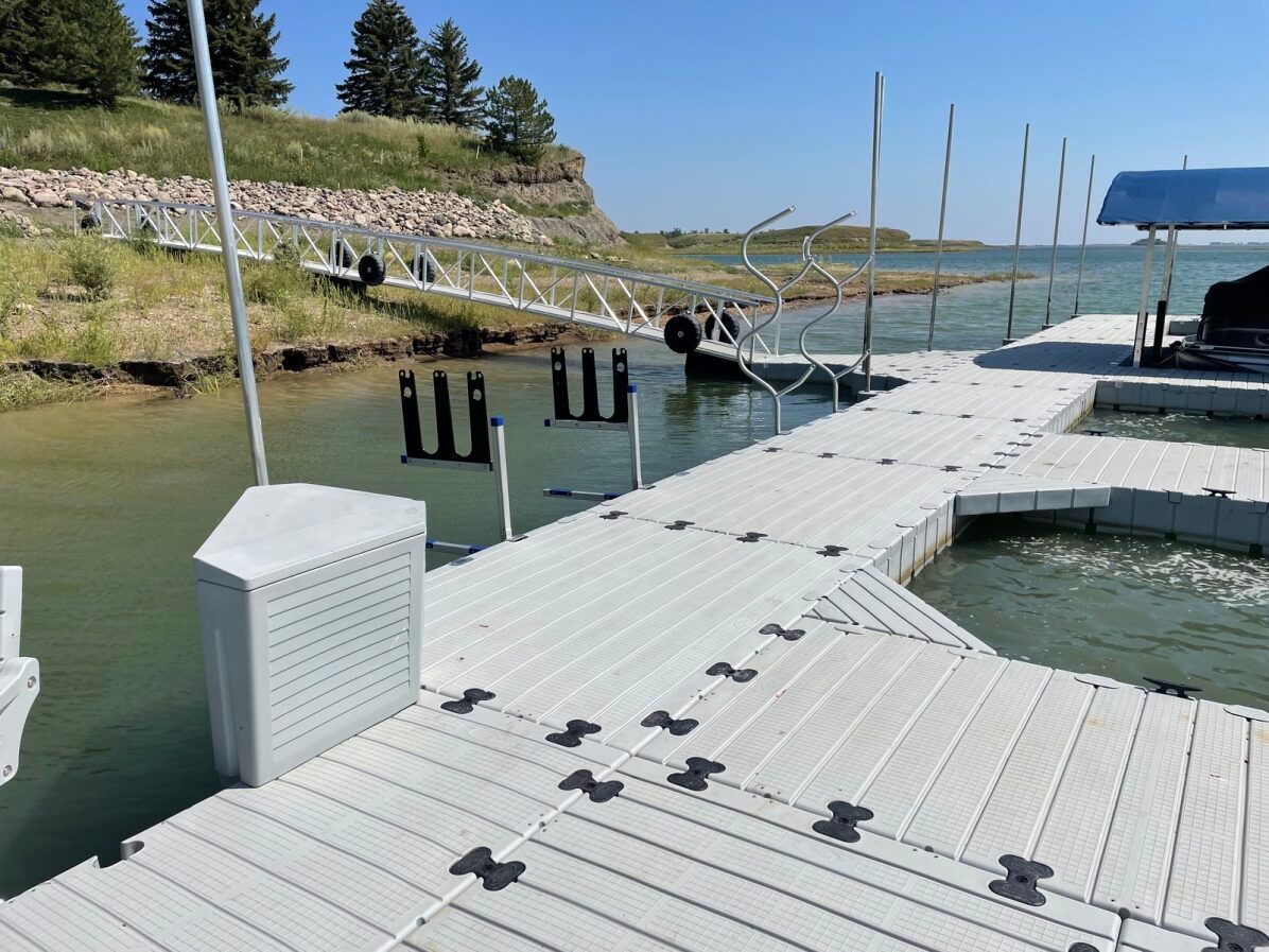 Strategically positioned along the edges of the dock, cleats provide boaters with convenient and reliable tie-off points, ensuring vessels remain securely anchored during docking and undocking. Bumpers act as protective cushions between boats and the dock structure. They absorb impact forces and prevent damage to both the boat and the dock during berthing. The combination of cleats and bumpers is essential for a well-equipped boat dock, offering practical solutions for secure mooring and safeguarding watercraft against potential collisions, ultimately preserving the integrity of both the boats and the dock itself.